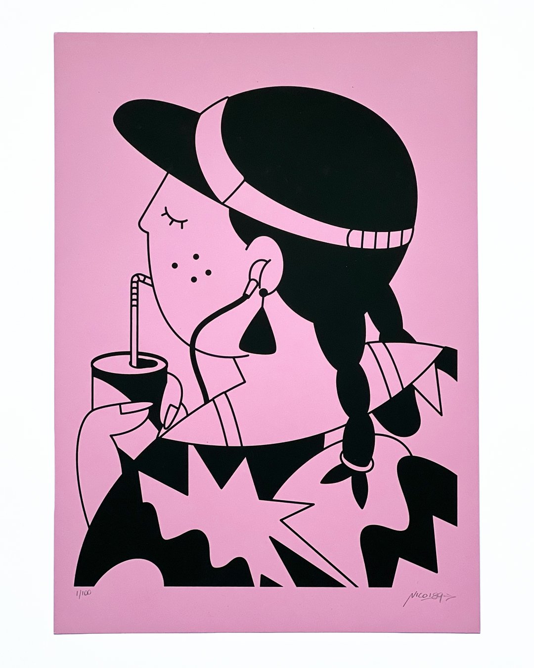 One color hand-pulled screen print on Fedrigoni Woodstock “Rosa” paper, 260 gsm. A3. Signed and numbered. Limited edition of 100.